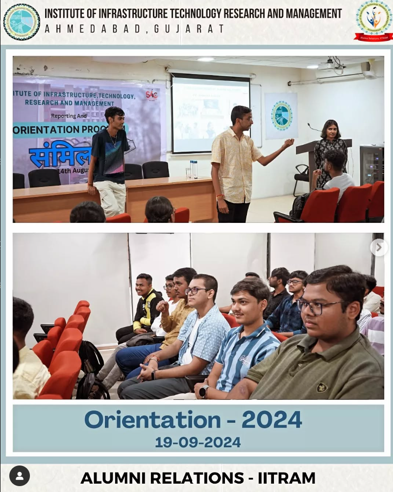 IITRAM's Orientation Program 2024 began on September 19, welcoming newly admitted B.Tech students. The program introduced them to the academic environment, campus facilities, and policies for a smooth transition. It featured interactive activities, sessions on academic regulations, campus resources, and extracurricular opportunities, ensuring a strong foundation for their journey at IITRAM.